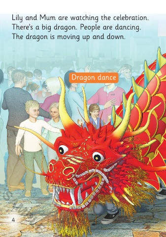 There’s a big dragon. People are dancing. “Are there real dragons?” asked Lily.