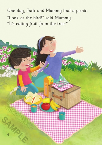 One day, Jack and Mummy had a picnic. “So, we eat sandwiches, the bird eats fruit