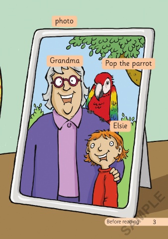 Who and what is in this story? photo Listen and say. Grandma Pop the parrot Elsie SAMPLE 2 Before reading 3 3/19/21 8:51 AM Elsies Selfies 01-24_Chit1P.indd 2-3 3/19/21 8:51 AM Elsies Selfies 01-24_Chit1P.indd 2-3