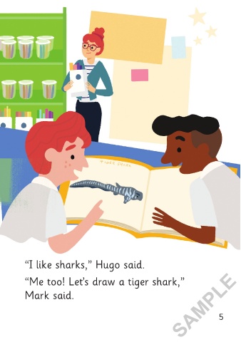 “Please get into pairs and choose your “Me too! Let’s draw a tiger shark,”