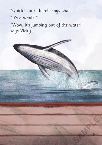 “What lives in the sea, Dad?” asks Vicky. “Quick! Look there!” says Dad.