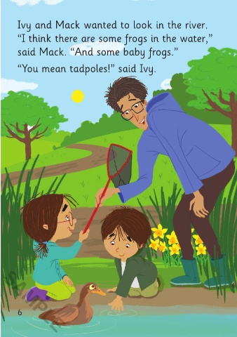 Ivy and Mack wanted to look in the river. “Let’s count the tadpoles!” said Mack.