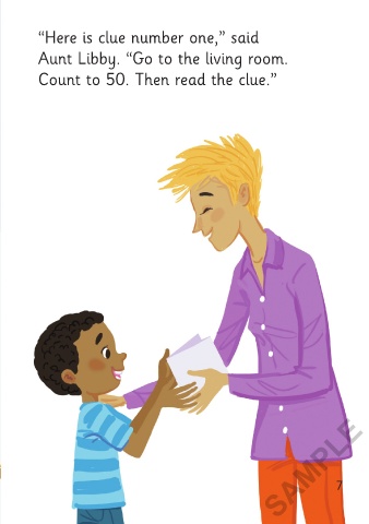 “It’s a treasure clue!” Count to 50. Then read the clue.”