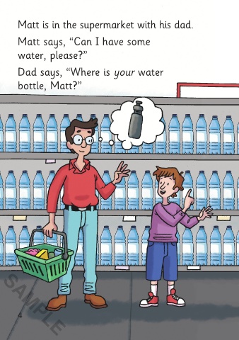 Matt is in the supermarket with his dad.
