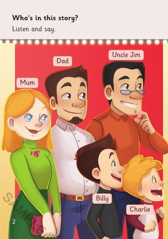 Who’s in this story? Listen and say. Uncle Jim Dad Mum SAMPLE Billy Charlie 2 Before reading 3 SAMPLE 3/22/21 9:26 AM Charlies Dream 01-24_Chit1P.indd 2-3 3/22/21 9:26 AM Charlies Dream 01-24_Chit1P.indd 2-3