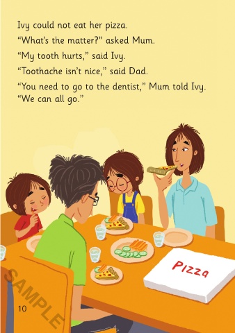 Ivy could not eat her pizza. “I don’t need the dentist,” said Ivy. “I only need