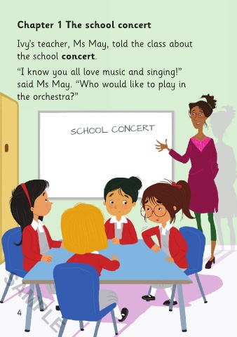 the school concert. Maddy put up her hand. “I can play the violin!”