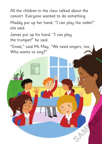 the school concert. Maddy put up her hand. “I can play the violin!”