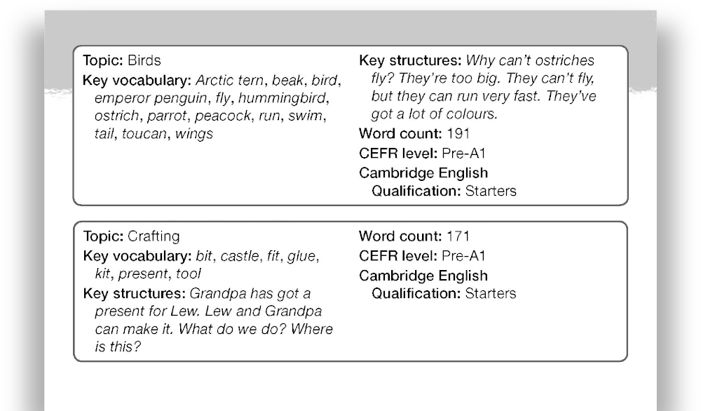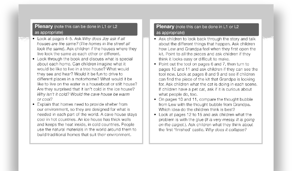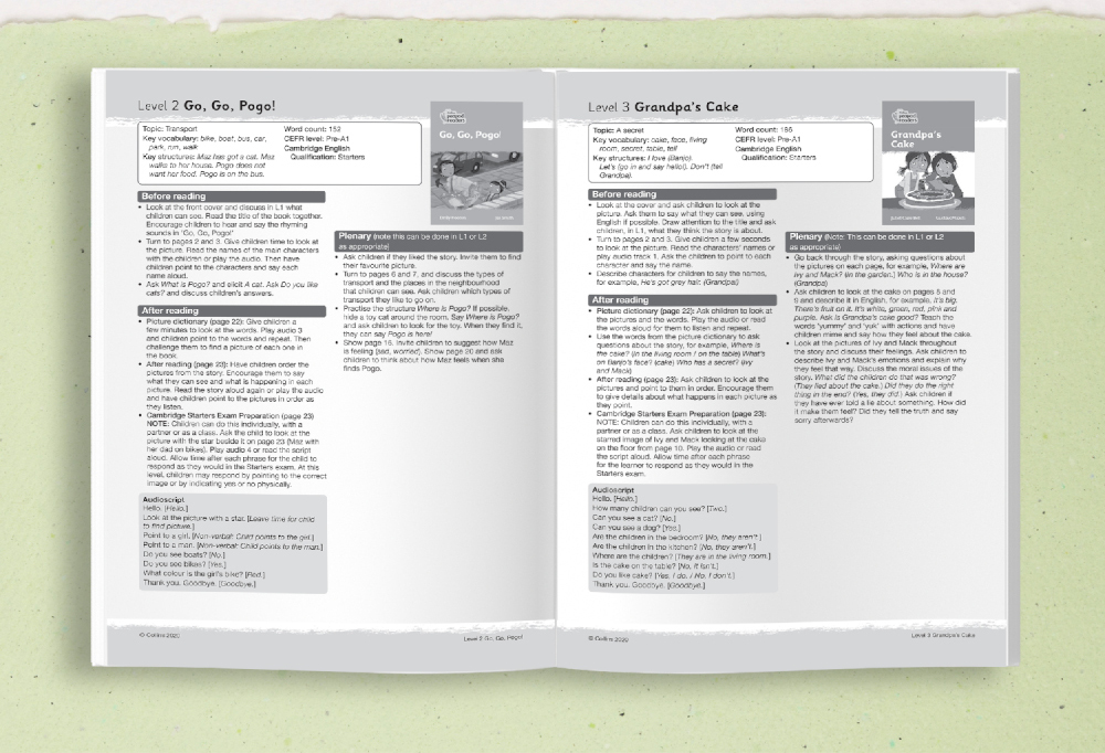 Every reading guide provides a clear overview of the key vocabulary and structures used in a book. A great feature that not only serves as a checklist of key learning items, it also helps teachers build their Lesson Plans!